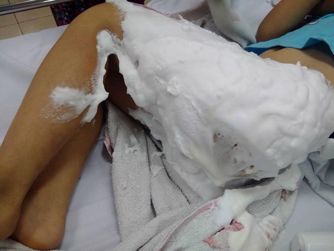 Bỏng nặng hai chân do nướng mực bằng cồn